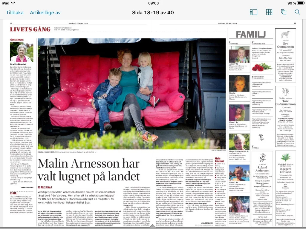Ett helt uppslag i Hallands Nyheter, med mina fina ungar i hammocken, exklusive tonåringen som inte ville vara med på bild. Jättefint ju!